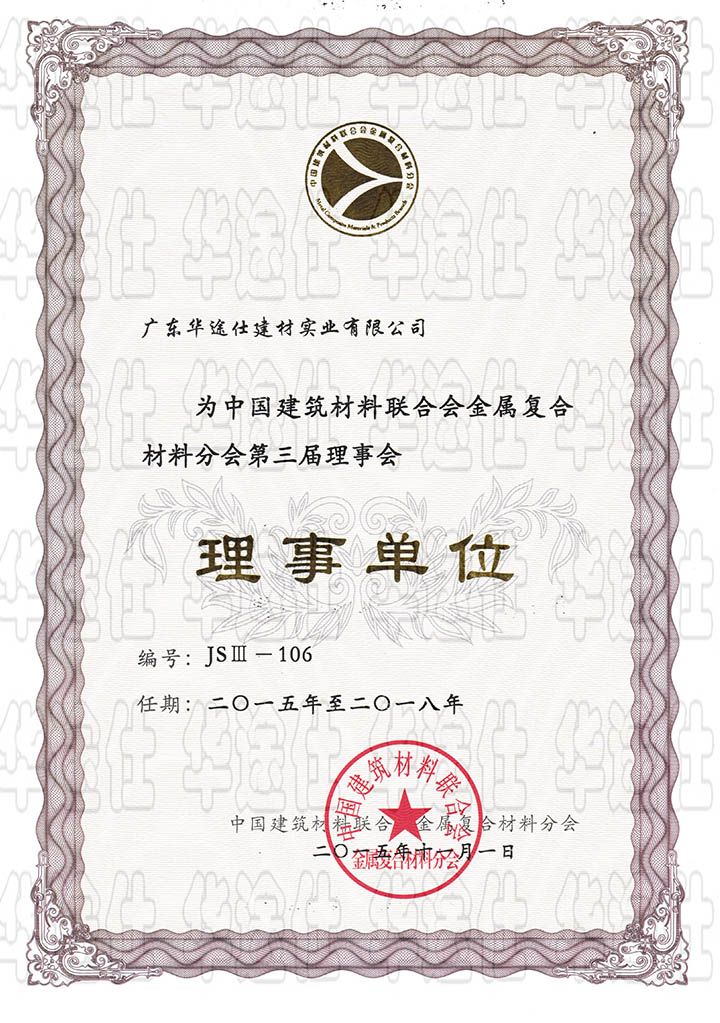 Director Unit Certificate for China Building Materials Association Metal Composites Branch